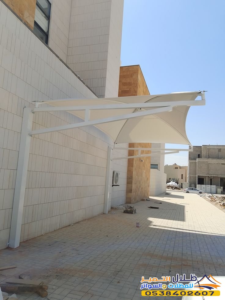 تصاميم مظلات حديثة، ألوان مظلات قماش، مظلات ملاحق عصرية، ورشة تركيب شمال الرياض.